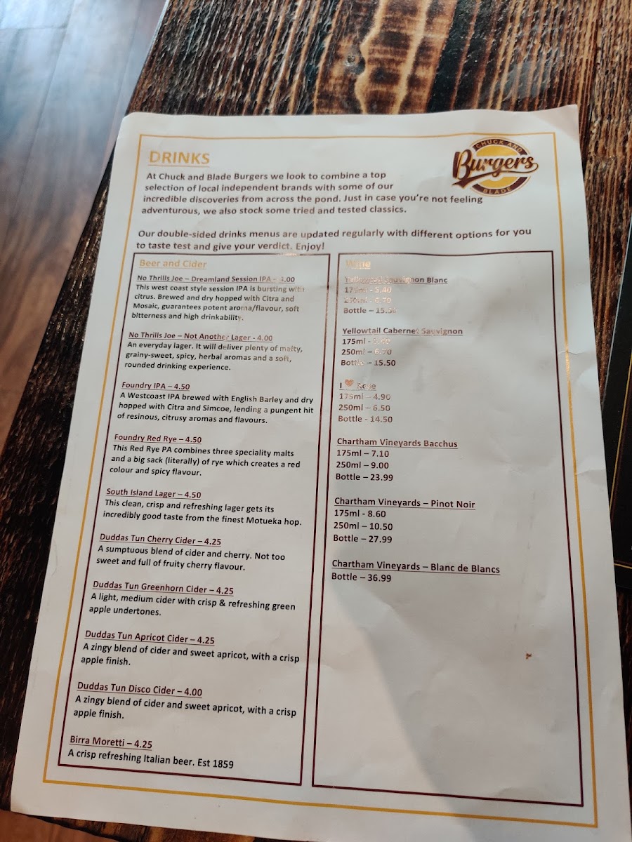 The ambiance of Chuck And Blade Burgers is casual and welcoming, perfect for both families and groups of friends. The service is friendly, with staff eager to make recommendations and ensure a pleasant dining experience. For anyone looking to enjoy a high-quality burger in Canterbury, Chuck And Blade offers a memorable dining experience with its flavorful menu, welcoming atmosphere, and top-notch customer service.
